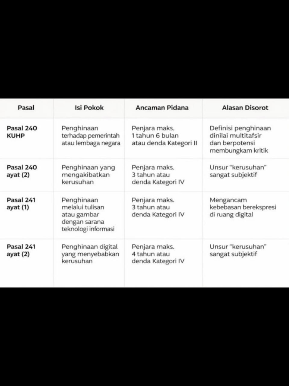 Dalam aturan terbaru, tindakan yang di anggap sebagai penghinaan terhadap pejabat atau simbol negara dapat di proses secara hukum. Meski demikian, pemerintah dan DPR menegaskan bahwa tidak semua kritik bisa di pidanakan.